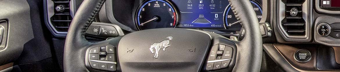 This Ford SUV comes in three colors for the interior, including Ebony/Active Orange, Ebony/Area 51, and Ebony/Roast. The Bronco Sport offers 65.2 cubic feet of cargo space for all the equipment you may need to bring, and you can choose between leather and cloth seats. Additional interior features include a power moonroof, dual-zone electronic automatic temperature control, heated front seats, eight-way power seats, and a heated leather steering wheel.