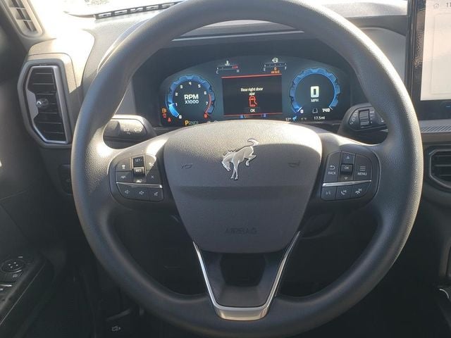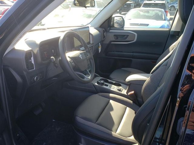 4-Wheel Disc Brakes, 6 Speakers, ABS brakes, Air Conditioning, Alloy wheels, AM/FM radio: SiriusXM, AM/FM Stereo, Auto High-beam Headlights, Automatic temperature control, Black Appearance Package, Brake assist, Carbon Black Grille w/Black BRONCO Lettering, Cargo Mat, Cloth w/Easy-to-Clean Front Bucket Seats, Compass, Delay-off headlights, Driver door bin, Driver vanity mirror, Dual front impact airbags, Dual front side impact airbags, Electronic Stability Control, Emergency communication system: SYNC 4 911 Assist, Equipment Group 200A, Four wheel independent suspension, Front & Rear Floor Liners w/o Carpet Mats, Front & Rear Splash Guards, Front anti-roll bar, Front Bucket Seats, Front Center Armrest, Front Driver/Passenger Seat Back Map Pockets, Front reading lights, Fully automatic headlights, Heated door mirrors, Illuminated entry, Knee airbag, Liftgate w/Black BRONCO SPORT Lettering, Low tire pressure warning, Occupant sensing airbag, Outside temperature display, Overhead airbag, Overhead console, Painted Shadow Black Roof, Panic alarm, Passenger door bin, Passenger vanity mirror, Power door mirrors, Power steering, Power windows, Premium Trimmed Htd Fr Sport Contour Bucket Seats, Radio data system, Rear anti-roll bar, Rear Parking Sensors, Rear reading lights, Rear seat center armrest, Rear window defroster, Rear window wiper, Remote keyless entry, Security system, SiriusXM, Speed control, Speed-sensing steering, Speed-Sensitive Wipers, Split folding rear seat, Steering wheel mounted audio controls, SYNC 4 w/Enhanced Voice Recognition, Tachometer, Telescoping steering wheel, Tilt steering wheel, Traction control, Trip computer, Variably intermittent wipers, Wheels: 17 Carbonized Gray-Painted Aluminum, Wheels: 17 Matte Black-Painted Aluminum.