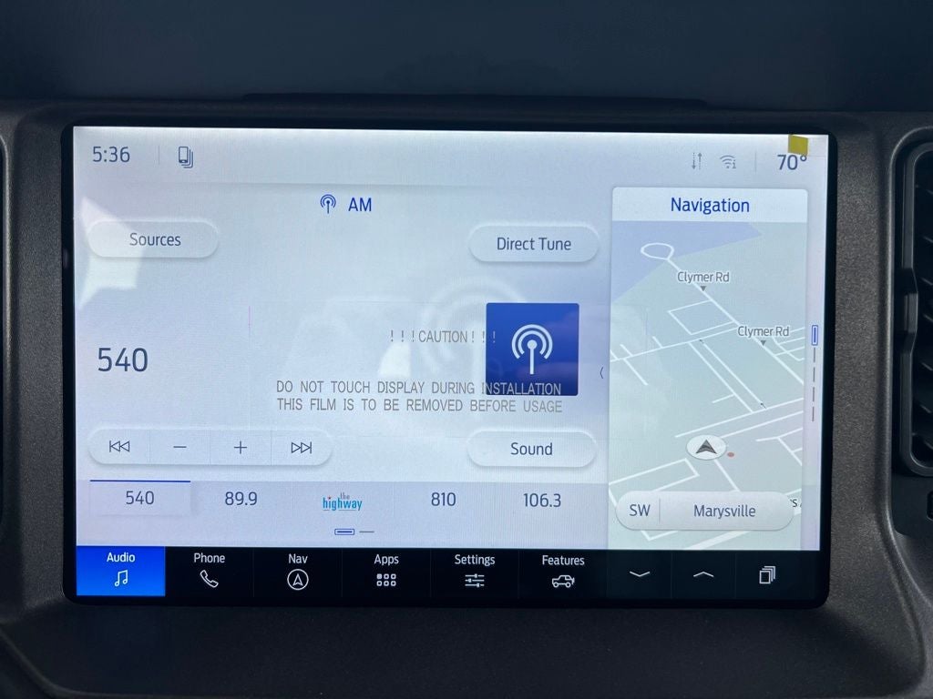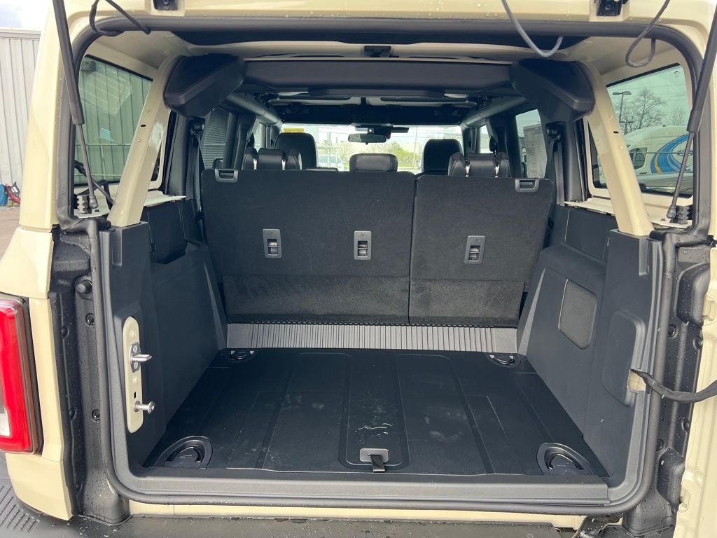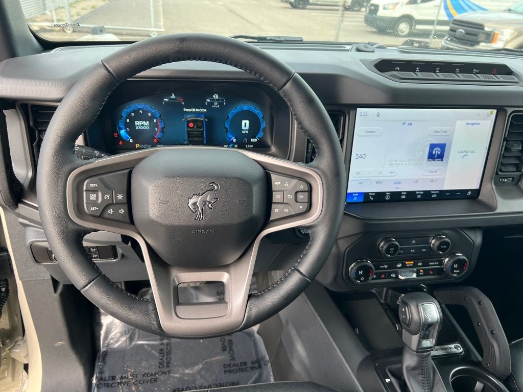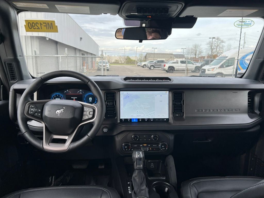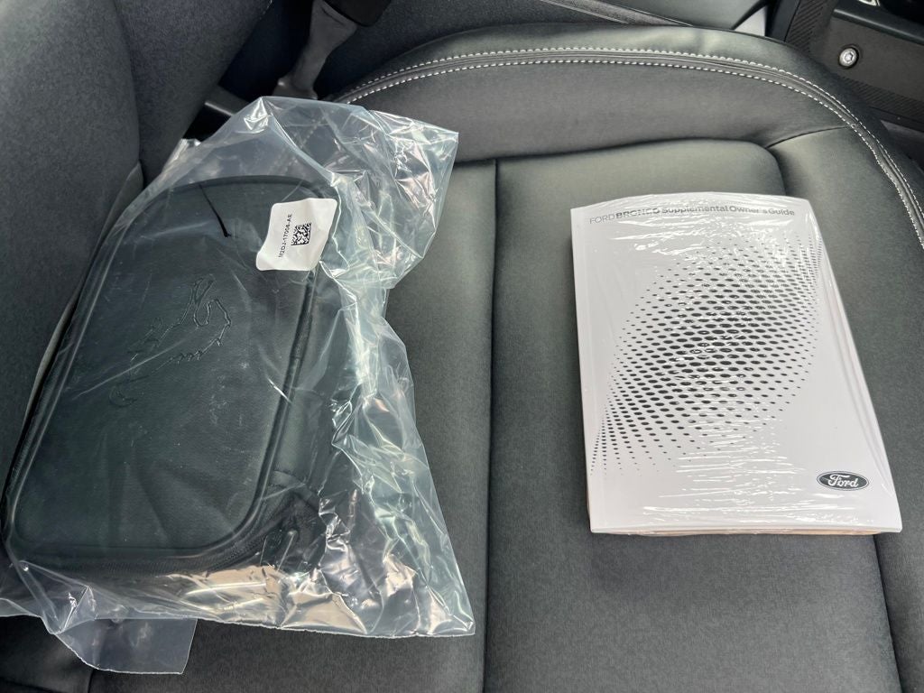 4-Wheel Disc Brakes, 7 Speakers, ABS brakes, Air Conditioning, Alloy wheels, AM/FM radio: SiriusXM with 360L, AM/FM Stereo, Auto High-beam Headlights, Auto-dimming Rear-View mirror, Brake assist, Compass, Delay-off headlights, Driver door bin, Driver vanity mirror, Dual front impact airbags, Dual front side impact airbags, Electronic Stability Control, Emergency communication system: 911 Assist, Exterior Parking Camera Rear, Ford Connectivity Package (1-Year Included), Front anti-roll bar, Front Bucket Seats, Front Center Armrest, Front fog lights, Front reading lights, Front Stabilizer Disconnect, Front wheel independent suspension, Fully automatic headlights, Hard Top Sound Deadening Headliner, Heated door mirrors, Heated front seats, High Clearance Suspension, Illuminated entry, Integrated roll-over protection, Leather Shift Knob, Low tire pressure warning, Marine Grade Vinyl Heated Bucket Seats, Occupant sensing airbag, Outside temperature display, Overhead airbag, Overhead console, Painted Hard Top, Panic alarm, Passenger door bin, Passenger vanity mirror, Position-Sensitive Bilstein Shock Absorbers, Power door mirrors, Power steering, Power windows, Radio data system, Rear-Window Defroster and Washer, Remote keyless entry, Sasquatch Package, Security system, SiriusXM with 360L, Speed control, Split folding rear seat, Steering wheel mounted audio controls, SYNC 4, Tachometer, Telescoping steering wheel, Tilt steering wheel, Traction control, Trip computer, Variably intermittent wipers, Voltmeter, Wheels: 17 Carbonized Gray-Painted Aluminum.