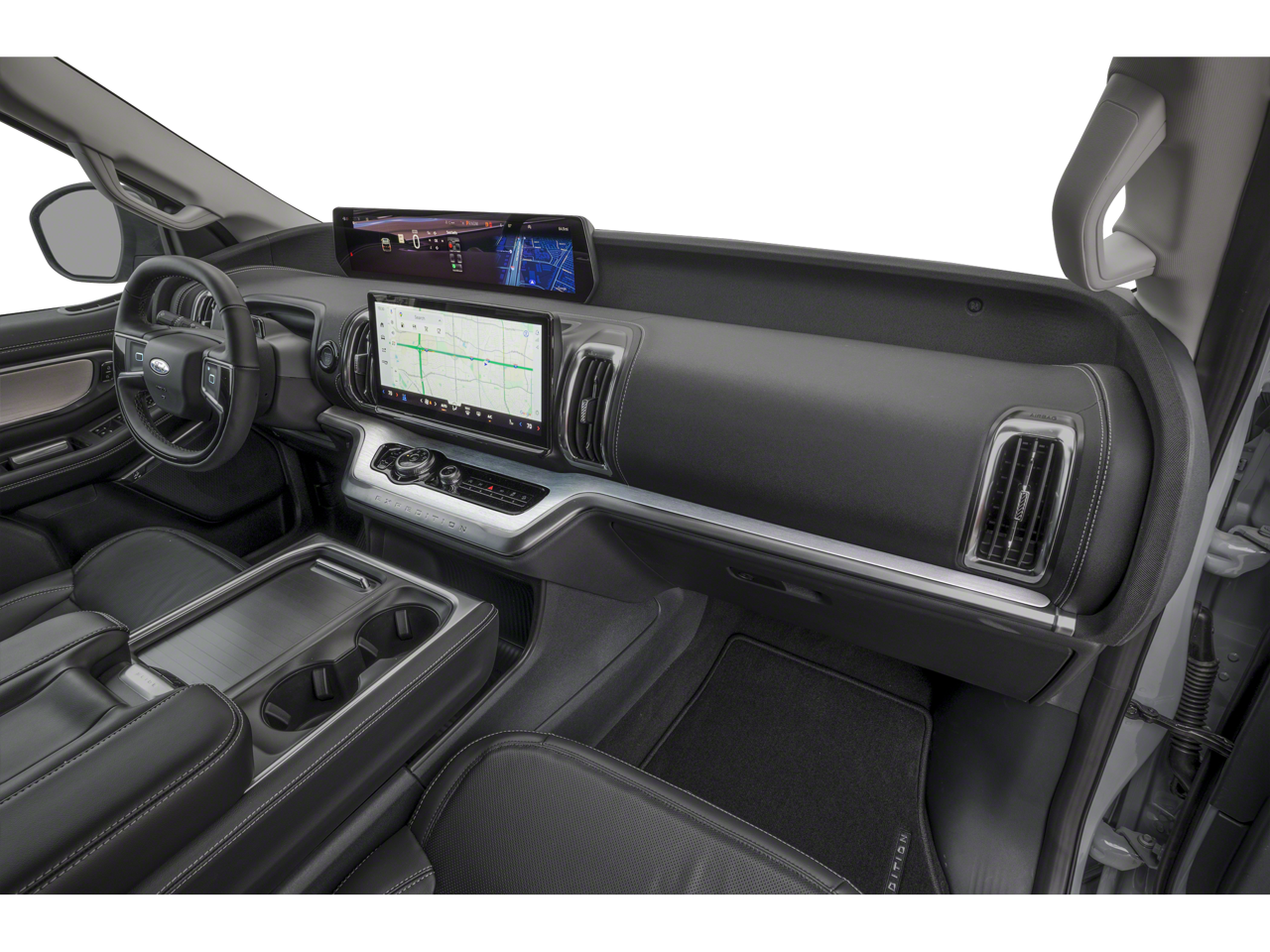 10 Speakers, 2nd Row Power-Folding Captain's Chairs, 3.73 Axle Ratio, 3rd row seats: split-bench, 4-Wheel Disc Brakes, ABS brakes, Air Conditioning, Alloy wheels, AM/FM radio: SiriusXM with 360L, Apple CarPlay/Android Auto, Auto High-beam Headlights, Auto-dimming door mirrors, Auto-dimming Rear-View mirror, Automatic temperature control, Black Belt Molding, Black Expedition Lettering on Hood, Black Headlamp Bezel with Ebony Trim Applique, Black Platinum Badge on Tailgate, Black Roof Rails, Brake assist, Bumpers: body-color, Carbon Black Front Bumper/Fascia, Compass, Delay-off headlights, Driver door bin, Driver vanity mirror, Dual front impact airbags, Dual front side impact airbags, Electronic Stability Control, Emergency communication system: 911 Assist, Exterior Parking Camera Rear, Ford Connectivity Package (1-Year Included), Ford Digital Experience, Four wheel independent suspension, Front and 2nd Rows Floor Liners (tray Style), Front anti-roll bar, Front Bucket Seats, Front Center Armrest, Front dual zone A/C, Front reading lights, Fully automatic headlights, Garage door transmitter, Genuine wood dashboard insert, Genuine wood door panel insert, Heated and Ventilated Leather Front Captain's Chairs, Heated door mirrors, Heated front seats, Heated rear seats, Heated steering wheel, Illuminated entry, Intersection Assist, Leather steering wheel, Low tire pressure warning, Memory seat, Multicontour Active Motion Lthr Frnt Captains Chairs, Navigation System, Occupant sensing airbag, Outside temperature display, Overhead airbag, Overhead console, Panic alarm, Passenger door bin, Passenger vanity mirror, Power door mirrors, Power driver seat, Power moonroof: Vista Roof, Power passenger seat, Power steering, Power windows, Radio data system, Radio: B&O Sound System by Bang and Olufsen, Rain sensing wipers, Rear air conditioning, Rear anti-roll bar, Rear reading lights, Rear Side Windows Laminated Glass, Rear window defroster, Rear window wiper, Reclining 3rd row seat, Remote keyless entry, Security system, Signature Grille Lighting, SiriusXM with 360L, Speed control, Speed-sensing steering, Speed-Sensitive Wipers, Split folding rear seat, Spoiler, Stealth Appearance Package, Steering wheel memory, Steering wheel mounted audio controls, Tachometer, Telescoping steering wheel, Tilt steer