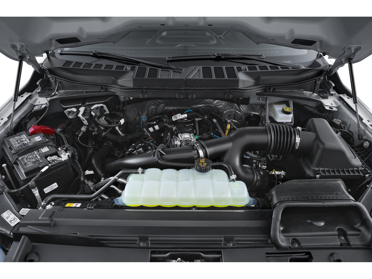 4WD, 18 Painted Aluminum Wheels, 3.55 Axle Ratio, 360 Degree Camera, 4 Pickup Box Tie-Down Plates, 4-Wheel Disc Brakes, 400W Pro Power Onboard (cab & Bed), 6 Speakers, 6 Angular Bright Anodized Step Bar, 6 Black Running Boards, ABS brakes, Adaptive Cruise Control with Stop and Go, Air Conditioning, Alloy wheels, AM/FM radio: SiriusXM with 360L, Auto High-beam Headlights, Auto-Dimming Rear-View Mirror, Bed Storage Boxes, Bed Utility Package, Black Exterior Badging, Black Grille, Black Painted Mesh Grille with Chrome Center Bar, Body-Color Door Handles, Body-Color Front and Rear Bumpers, Brake assist, Bumpers: body-color, Chrome Door Handles, Chrome Front and Rear Bumpers, Chrome Single-Tip Exhaust, Cloth 40/Console/40 Front Seats, Compass, Console Worksurface, Dark Interior Appliques, Delay-off headlights, Driver door bin, Driver vanity mirror, Dual Exhaust with Black Tips, Dual front impact airbags, Dual front side impact airbags, Dual-Zone Electronic Automatic Temperature Control, Electronic Stability Control, Emergency communication system: SYNC 4 911 Assist, Equipment Group 303A High, Ford Co-Pilot360 Assist 2.0, Ford Connectivity Package (1-Year Included), Front anti-roll bar, Front Center Armrest, Front fog lights, Front Parking Sensors, Front reading lights, Front wheel independent suspension, Fully automatic headlights, Gray Box Side Decal, GVWR: 6,650 lbs Payload Package, Heated door mirrors, Heated Front Seats, Illuminated entry, Intelligent Access with Push Button Start, Internet access capable: 5G Modem - Ford Connectivity Package, LED Box Lighting, Low tire pressure warning, Mobile Office Package, Occupant sensing airbag, Outside temperature display, Overhead airbag, Overhead console, Panic alarm, Partitioned Lockable Rear Storage, Passenger door bin, Passenger vanity mirror, Power door mirrors, Power Glass Heated Sideview Mirrors, Power steering, Power windows, Power-Adjustable Pedals, Power-Sliding Rear Window, Radio data system, Radio: AM/FM Stereo with SiriusXM 360L, Radio: B&O Sound System by Bang and Olufsen, Rear Parking Sensors, Rear reading lights, Rear step bumper, Rear window defroster, Remote keyless entry, Remote Start System with Remote Tailgate Release, Security system, Speed control, Split folding rear seat, Steering wheel mount