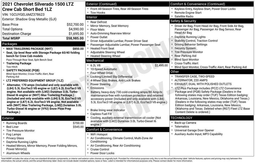 - LTZ Preferred Equipment Group includes standard equipment