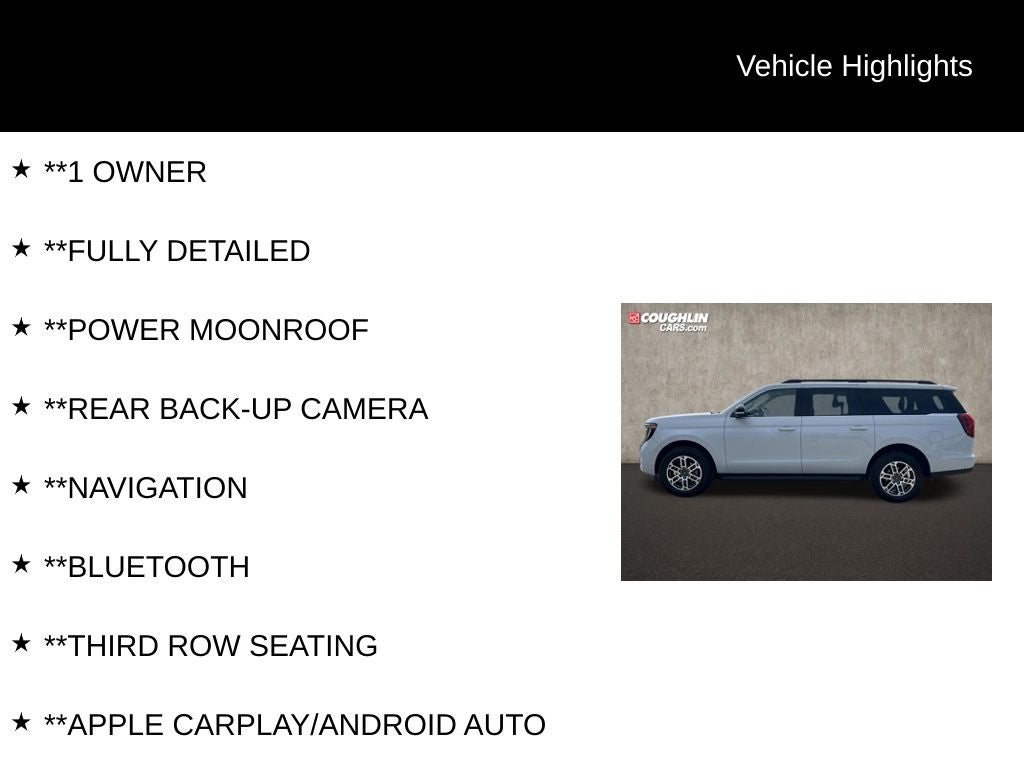 This 2025 Ford Expedition Max Active is an exceptional SUV that combines exceptional performance, premium features, and uncompromising utility. Don't miss your chance to experience it for yourself. Visit our showroom today and let us demonstrate why this vehicle is the perfect fit for your lifestyle.