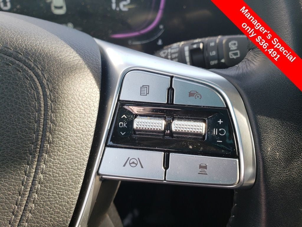 Equipped with Kia Certified Pre-Owned Certified, 3rd row seats: split-bench, 4-Wheel Disc Brakes, 6 Speakers, ABS brakes, Air Conditioning, Alloy wheels, AM/FM radio: SiriusXM, Apple CarPlay & Android Auto, Auto High-beam Headlights, Automatic temperature control, Brake assist, Bumpers: body-color, Carpeted Floor Mats, Delay-off headlights, Driver door bin, Driver vanity mirror, Dual front impact airbags, Dual front side impact airbags, Electronic Stability Control, Emergency communication system: 911 Connect, Exterior Parking Camera Rear, Four wheel independent suspension, Front anti-roll bar, Front Bucket Seats, Front Center Armrest, Front dual zone A/C, Front reading lights, Fully automatic headlights, Heated door mirrors, Heated Front Bucket Seats, Heated front seats, Illuminated entry, Knee airbag, Leather Shift Knob, Leather steering wheel, Low tire pressure warning, Mud Guard Kit, Navigation System, Occupant sensing airbag, Outside temperature display, Overhead airbag, Overhead console, Panic alarm, Passenger door bin, Passenger vanity mirror, Power door mirrors, Power driver seat, Power Liftgate, Power moonroof, Power steering, Power windows, Radio data system, Radio: AM/FM Display Audio System, Rear air conditioning, Rear anti-roll bar, Rear audio controls, Rear reading lights, Rear side impact airbag, Rear window defroster, Rear window wiper, Reclining 3rd row seat, Remote keyless entry, Security system, Speed control, Speed-sensing steering, Split folding rear seat, Spoiler, Steering wheel mounted audio controls, SynTex Synthetic Leather Seat Trim, Tachometer, Telescoping steering wheel, Tilt steering wheel, Traction control, Trip computer, Turn signal indicator mirrors, Variably intermittent wipers, and Wheels: 20 x 7.5 Black Finish.